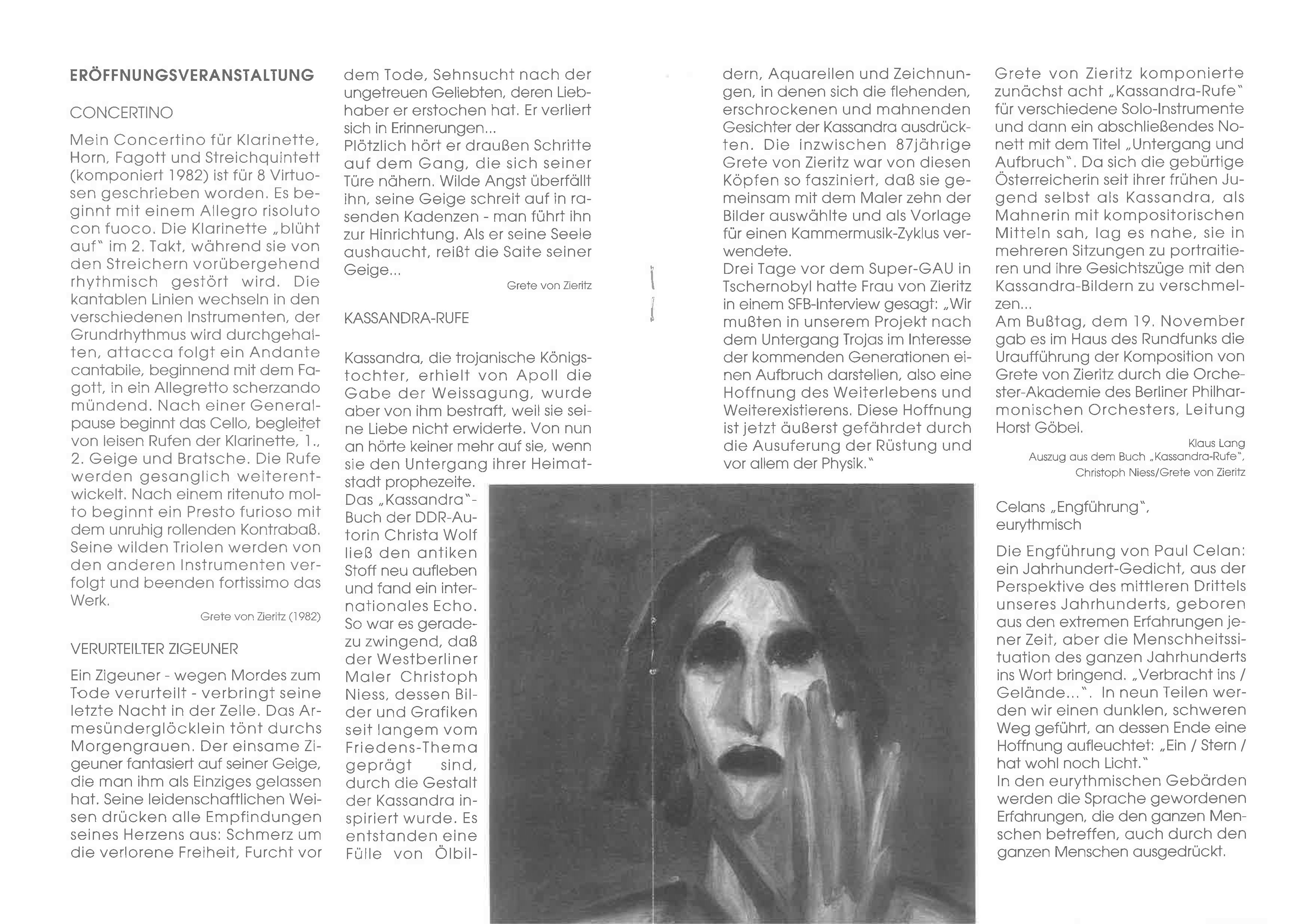 Auf Einladung des Malers Christoph Niess entstand die Performance „Kassandra-Rufe“.